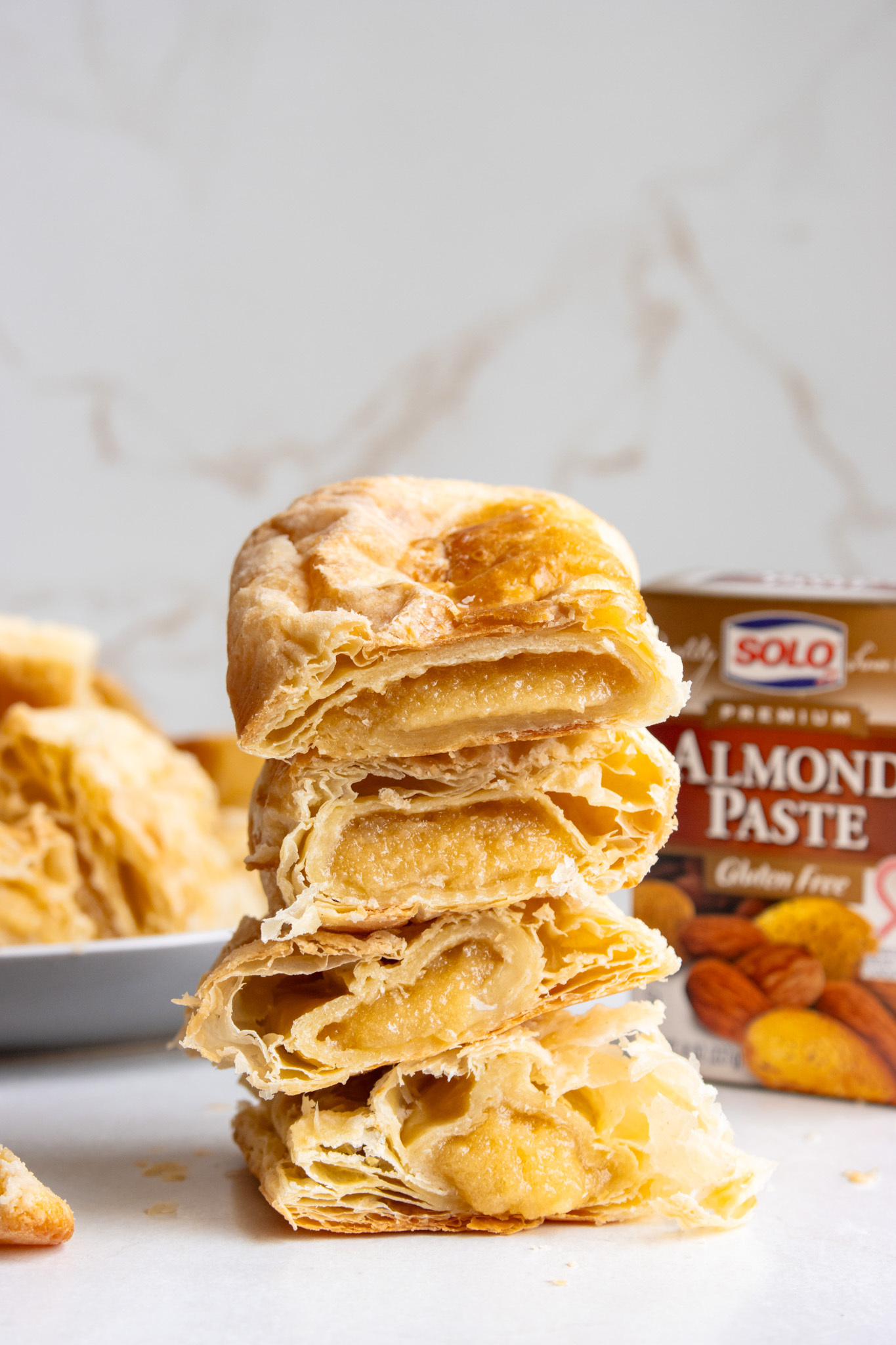 On a lightly floured cloth, turn out almond mixture and shape into four rolls about 11 inches long.